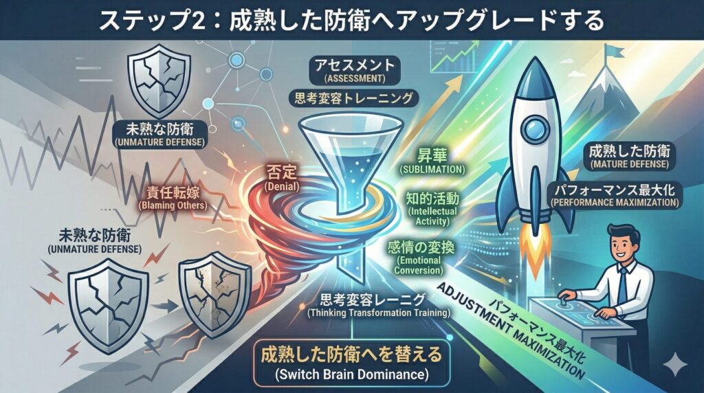 しかし、真の適応機制とは、自分の脳を不安ベースから報酬ベースへとアップデートし、環境を自分の成長のために利用することです。成熟した防衛を使いこなし、不安をガソリンに変えていくプロセスそのものです。